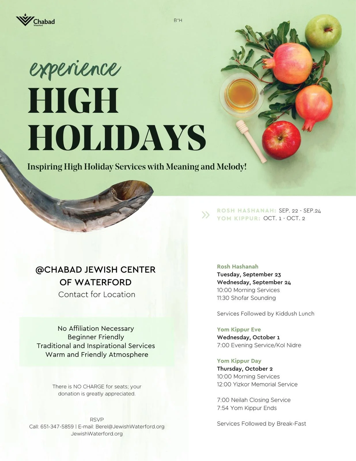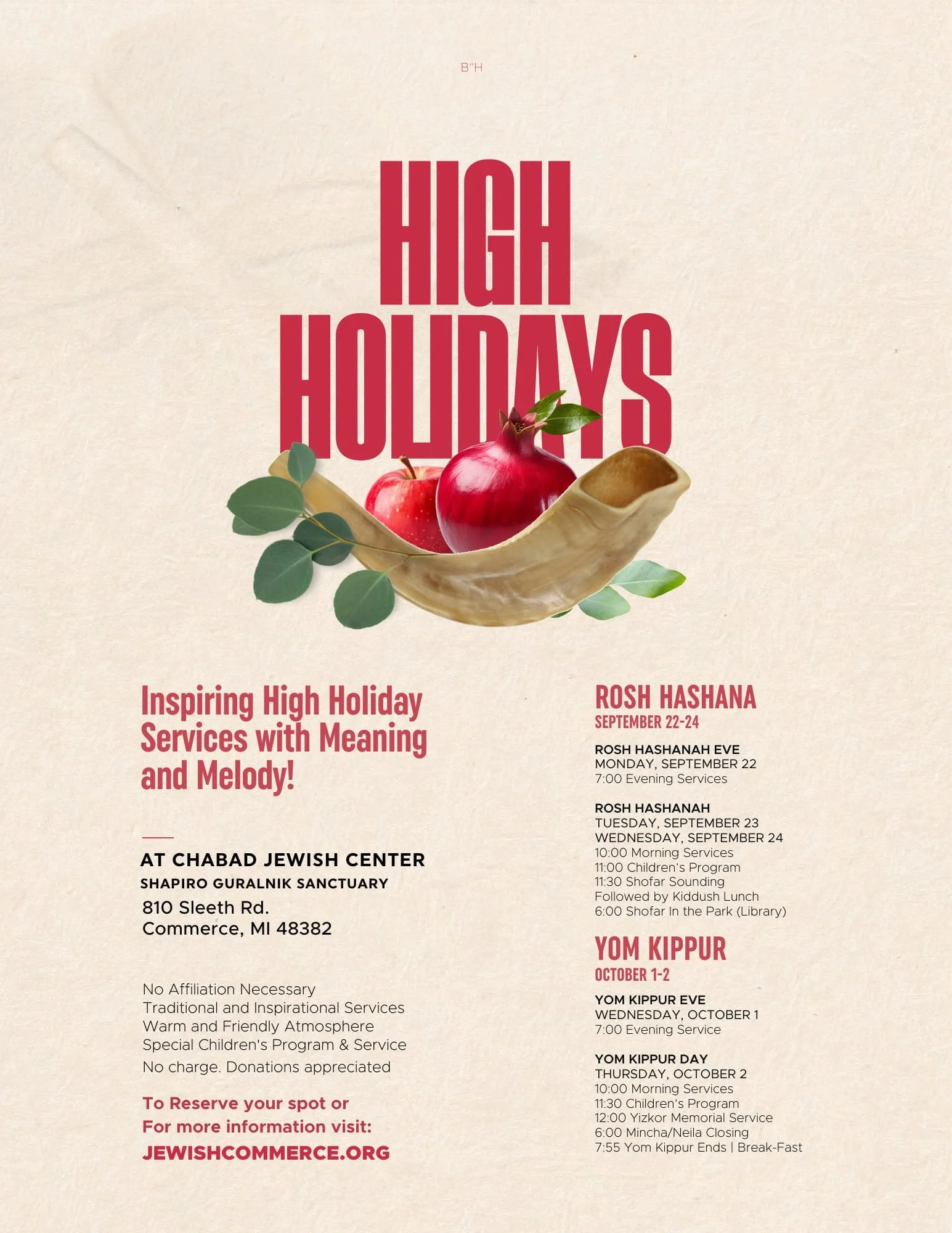 Shofar Blowings will take place on Tuesday, Sept 23 & Wednesday, Sept. 24, 2025 at Chabad houses across Michigan: